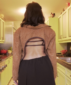 Blazers con corte en espalda en forma de arco -algunos llevan ojales plateados con nudos en macramé & otros simplemente espalda descubierta-.