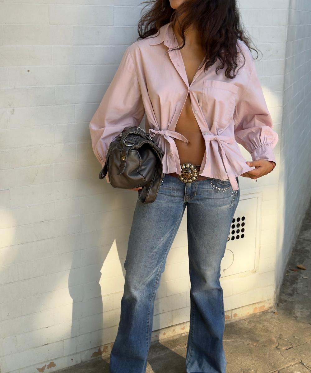 Del archivo a tu clóset: añadimos dos amarres para ajustar a tu cintura en estas camisas en desuso. Puedes manipularlos como más te guste.