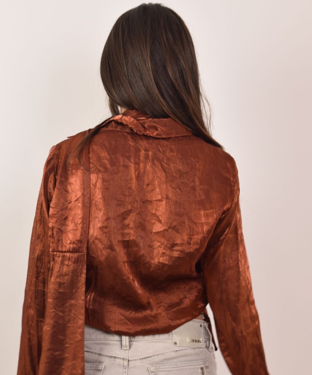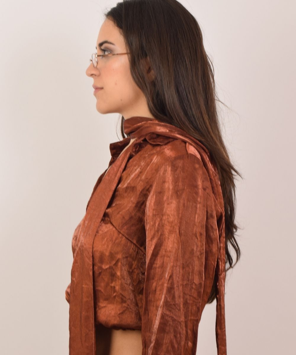 Dijimos adiós a unos botones con brillo y le sumamos versatilidad con unos nuevos en las mismas tonalidades del top. Además, le dimos más opciones de uso al añadirle unas tiras de ajuste en la parte inferior para que juegues con el largo y el volumen. Toda la tela de esta prenda es la original.