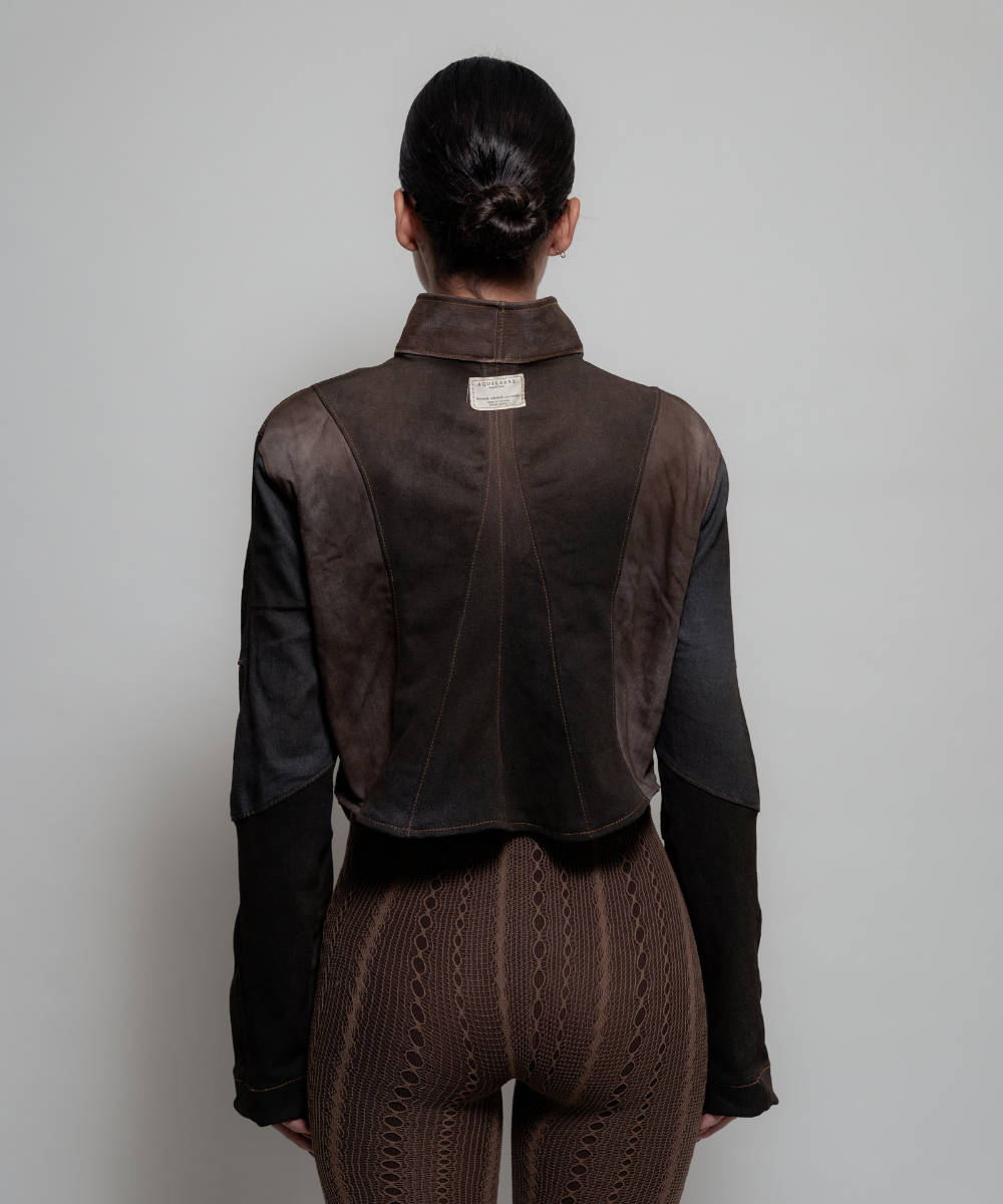 El resultado es una prenda con carácter, que no pretende ocultar su historia, sino llevarla puesta. Una chaqueta que representa lo que somos: transformación, alquimia y memoria convertidos en diseño.