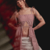 A partir de una camisa tradicional de manga larga y cuello clásico, reconstruimos el patrón para desarrollar una silueta renovada. Incorporamos pinzas en el busto que definen la forma, junto a un sistema de amarres en la espalda que permite un ajuste preciso y adaptable, pensado para acompañar el cuerpo con comodidad.